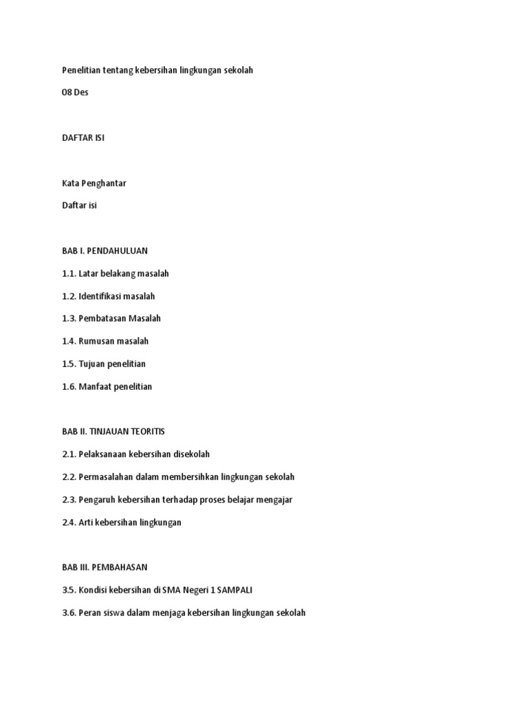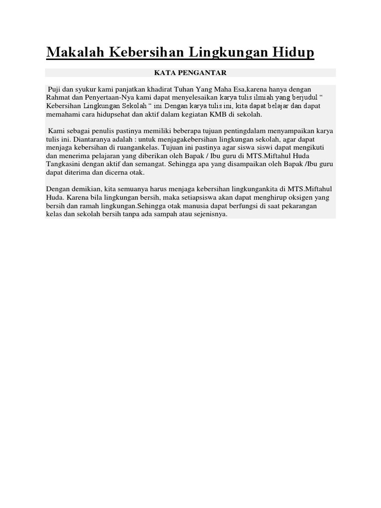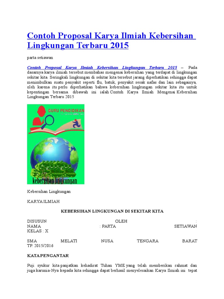 Contoh Proposal Karya Ilmiah Kebersihan Lingkungan Terbaru 2015 from imgv2-2-f.scribdassets.com Karya ilmiah tentang kebersihan lingkungan. Check spelling or type a new query. Maybe you would like to learn more about one of these? We did not find results for: