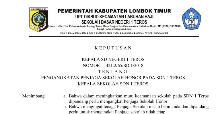 Download contoh sk tim supervisi 2020. Bahwa untuk kelancaran pelaksanaan penerimaan peserta didik tahun ajaran 2013/2014 di tk pertiwi 02 tunggul perlu adanya panitia penerimaan peserta didik tahun ajaran 2013/2014. Download sk guru ngaji dari kepala desa. Pemerintah desa sukanegara 10132018 112300 pm. Demikian informasi tentang surat keputusan pengangkatan guru ngaji dari desa oleh kades sebagai acuan dalam kelengkapan administrasi insentif pengajar pada lembaga pendidikan islam, semoga menambah wawasan dan koleksi tulisan anda, memudahkan dalam menyejahterakan pengajar. Format sk guru paud/ tk dari kepala sekolah tahun 2017/2018 ini merupakan salah satu contoh surat keputusan yang akan saya bagikan dalam kesempatan kali ini khususnya untuk kebutuhan pengangkatan guru paud/tk oleh kepala sekolah. Contoh sk guru paud dari kepala desa pdf guru ilmu sosial contoh sk kepala sekolah 2018. Undangan pengambilan sumpah janji pegawai negeri sipil dan penyerahan sk cpns ke pns. Pembentukan panitia penerimaan peserta didik. Pengertian surat keputusan pendirian lembaga paud adalah surat keputusan yang diterbitkan oleh yayasan atau dinas pendidikan yang menerangkan tentang pembentukan atau pendirian lembaga paud. Bahwa untuk melaksanakan ketentuan pasal 67 peraturan pemerintah nomor 72 tahun 2005 tentang desa (lembaran negara republik indonesia nomor 158 tahun 2005, tambahan lembaran negara republik indonesia nomor 4587) diperlu untuk mengangkat tenaga guru paud/tk non pns dan guru bantu desa mataiwoi dengan keputusan kepala desa; Surat keputusan kepala desa nomor z9lktps2006 tentang. Contoh sk pengangkatan guru paud dari kepala desa unduh, desa mandiri contoh sk pembentukan paud, pkbm albantani contoh draf sk pengurus pkbm, copy lengkap contoh sk kepala desa administrasi desa, retno yuniarti proposal pendirian perpustakaan, contoh contoh sk id scribd com, cara membuat surat keputusan elmudunya s blog, contoh surat keputusan.